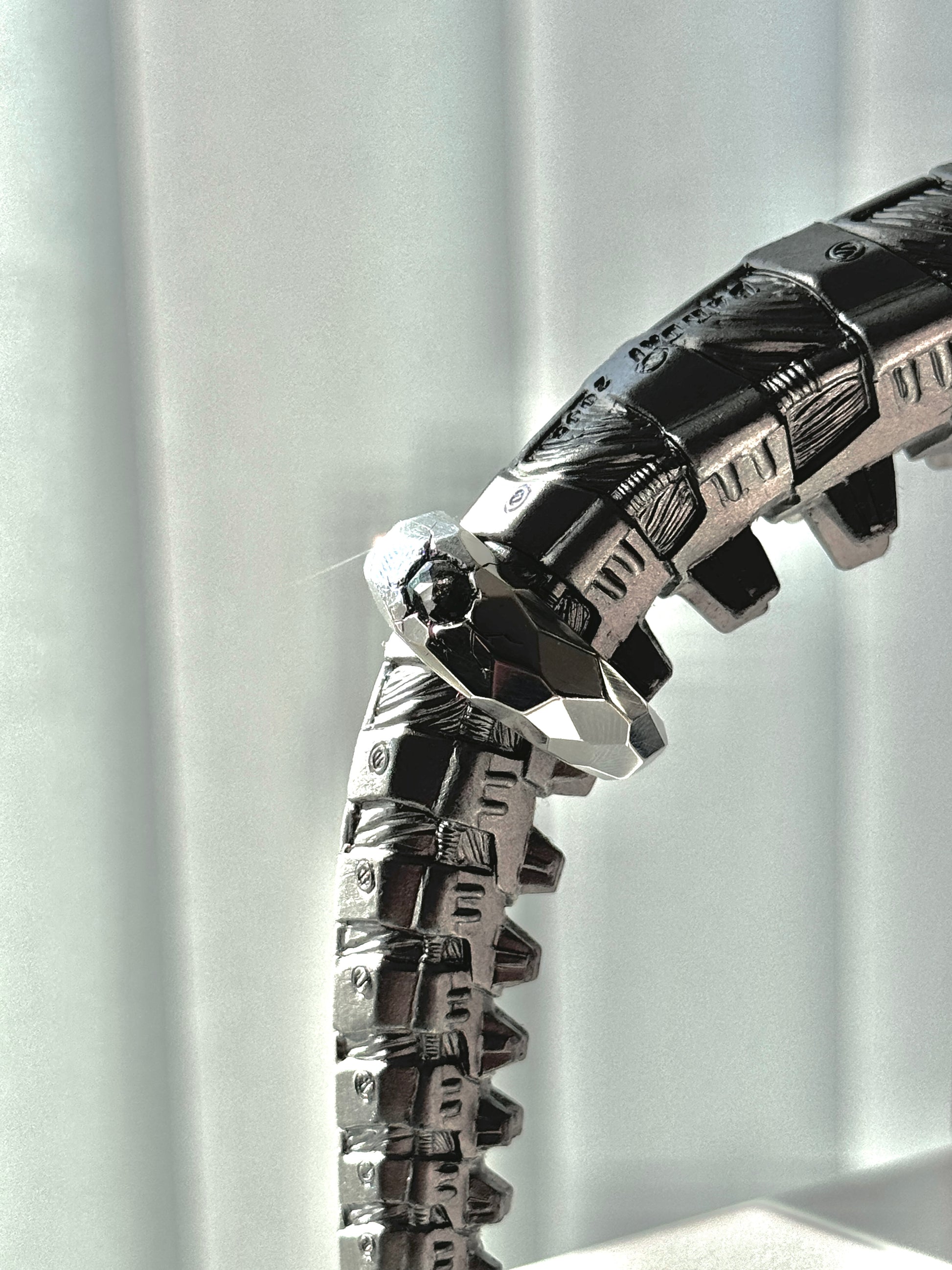 A bold, tapered silhouette meets an illusion flush setting, seamlessly uniting metal and stone. Chunky yet refined, striking yet effortless. Our most radiant piece to date, catching the light with every movement.